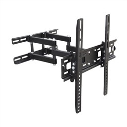 Instalación: Pared; Color: Negro; Inclinación ajustable; Vesa: 100×100, 200×100, 200×200, 200×300, 300×300, 200×400, 400×300, 400×400; Peso máximo (Kg): 30; Medida televisor («): 32 a 55; Ángulo de inclinación (°): ±10; Ángulo de giro (°): ±45; Articulado; Distancia a la pared (mm): 410; Web: http://riverint.com/producto/sp-3255-a-soporte-pared-articulado-32-55-elbe/;; SOPORTE TV ARTICULADO 32»-55»