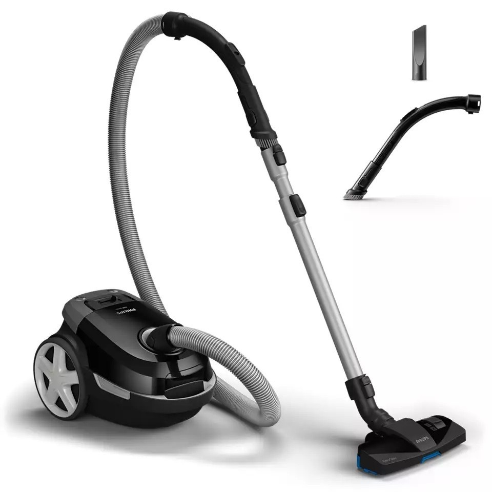 Potencia (W): 900; Capacidad bolsa / depósito (L): 3; Longitud del cable (m): 6; Tubo telescópico; Filtro: Allergy; Asa de transporte; Peso (kg): 4,6; Tubo: Metálico; Color: Negro; Radio acción (m): 9; Nivel de ruido (dB): 79; Ruedas: de goma; Cepillo TriActive; Tecnología AirflowMax; Acoplamiento ActiveLock; Boquilla estrecha; Cepillo suave integrado en el mango; Compacto; Web: https://www.philips.es/c-p/XD3112_09/3000-series-aspirador-con-bolsa;; Aspirador con bolsa Serie 3000* Diseño Compacto, Motor de 900w con gran potencia de succióny con tecnología AirflowMax* Cepillo Triactive, para todo tipo de sue los y Accesorios integrados* Filtro Allergy, captura más de un 99.9% de polvo (C ertificado ECARF)* Depósito 3L, bolsa S-Bag con rendimiento duradero* Cable 9m r adio