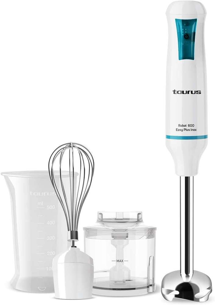 Potencia (W): 600; Accesorio picador; Piezas aptas para el lavavajillas; Diseño ergonómico; Accesorio emulsionador; Pie desmontable; Diseño del pie antisalpicaduras; Cuchillas de alto rendimiento en acero inoxidable; Vaso medidor; Batidora y accesorios libres de BPA; Varilla en acero inoxidable de alta resistencia; Varilla con cierre bayoneta;; Robot 600 Easy Plus Inox Batidora de varilla, 916998000