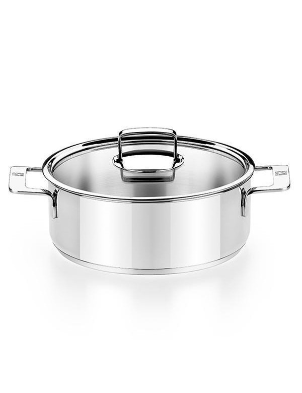 Cacerola baja 16 cm. inox, con tapa vidrio, serie Signature.