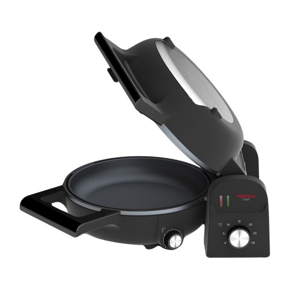 Tecnología vuelta y vuelta; Apertura (º): 180; Temporizador con apagado automático; Recubrimiento antiadherente; Mango con bloqueo; Termostato; Almacenamiento: Vertical; Ambas placas se calientan y aseguran una distribución equitativa del calor; Web: http://www.princess.nl/es/producten/1147-tortilla-chef.html;; 118000, 374x328x126mm, 1300W, Incluye Termostato y Temporizador