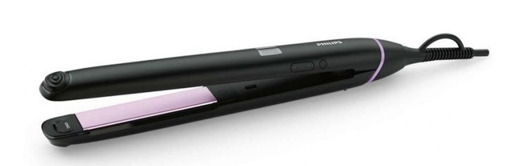 Temperatura máxima (°C): 220; Calentamiento rápido; Placas con revestimiento cerámico; Tiempo de calentamiento (s): 30; Medidas de las placas (mm): 25 x 105; Color: Negro; Tensión (V): 110 – 240; Longitud del cable (m): 1,8; Desconexión automática; Cable giratorio; Número de temperaturas: 10; Punta fría; Tecnología ionic; Anilla para colgar; Web: http://www.philips.es/c-p/BHS674_00/straightcare-plancha-para-el-pelo; Resistencia de alto rendimiento;; Planchas ceramicas extralargas 25X105mm, Ionica, Control digital de la temperatura