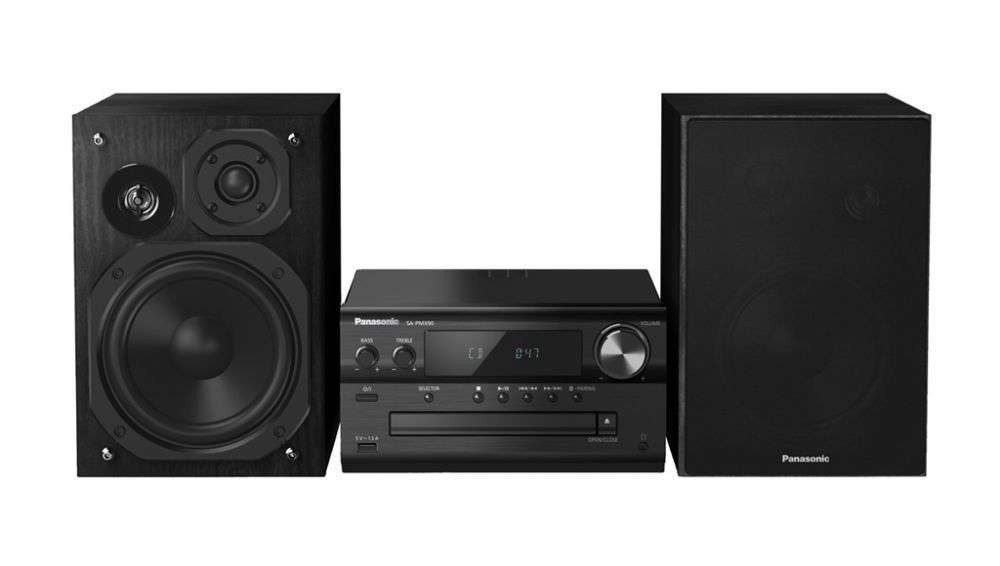 Potencia rms (W): 120; Bandas (SINT): FM; Entrada auxiliar con reproducción automática; Multisincronización; Reproductor CD-R / CD-RW; Sintonización automática; Audio de alta definición; Tweeter de cúpula de seda; Entrada óptica; Reloj; Número de vias de los altavoces: 3; Número de presintonias: 30; Color: Negro; Número de ecualizaciones: 4; Mando a distancia; Conexión auriculares; Realce de graves (AMPLI): D.Bass; Tensión (V): 220 – 240; Autoapagado; Remasterización Bluetooth; Tecnología LincsD-Amp; Conexión USB-DAC; Función Sleep; Sonido envolvente; RDS; Temporizador; Web: https://www.panasonic.com/es/consumer/audio-y-video/sistemas-hi-fi/sc-pmx90.html;; Micro 120W,3vias,HiRes,BT,AUX-In